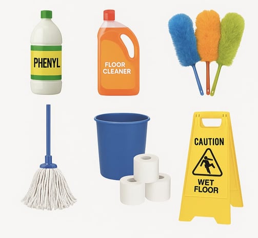 We offer industrial-grade cleaning chemicals, mops, machines, and janitorial tools for effective housekeeping.