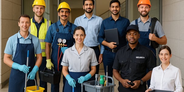 Providing technical and non-technical staff including housekeeping, facility management, security, and office support.